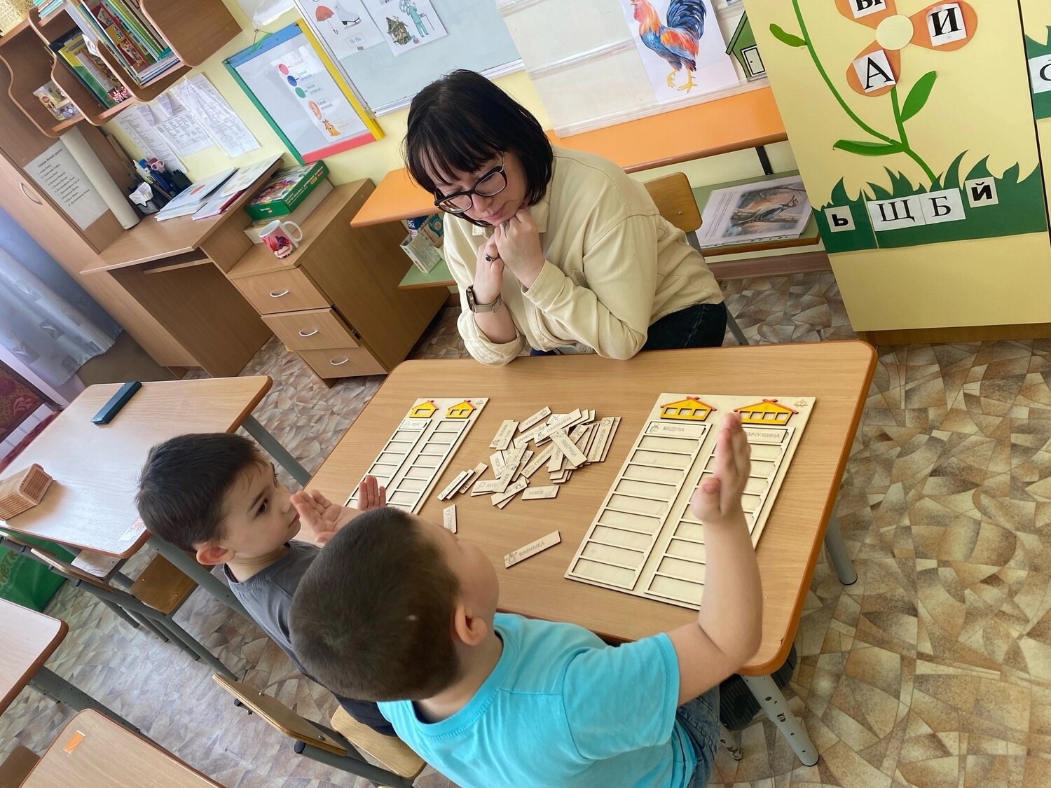 Ребята играли в увлекательную игру "Слоговые домики" В процессе игры определяли количество слогов в словах, место слога в слове. В процессе игры дети самостоятельно рассуждали, сопоставляли, сравнивали и анализировали, а значит развивалось вербально-логическое мышление.